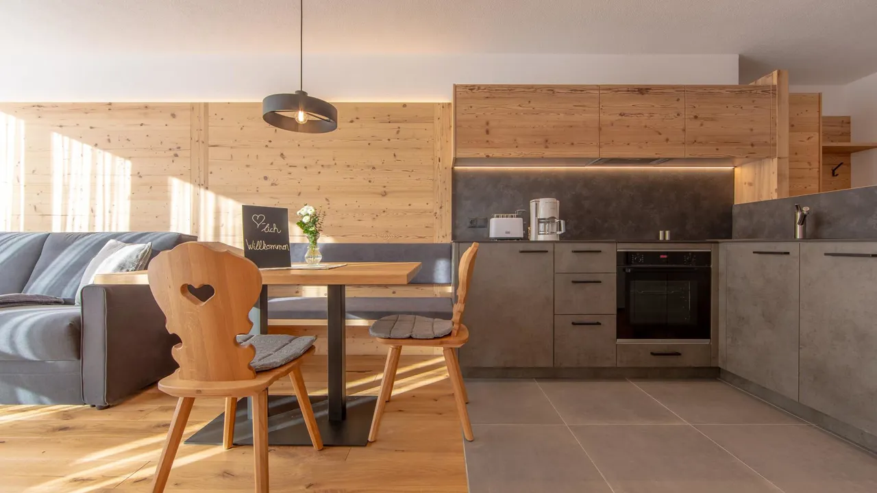 The new Metzgermayr apartments impress with their lovingly arranged furnishings in a beautiful, rural style. Carefully selected materials, including reclaimed spruce wood, create a special feel-good atmosphere. At the same time, all contemporary requirements have been taken into account. The south-facing flats offer fantastic mountain views and a cosy ambiance for maximum holiday enjoyment.